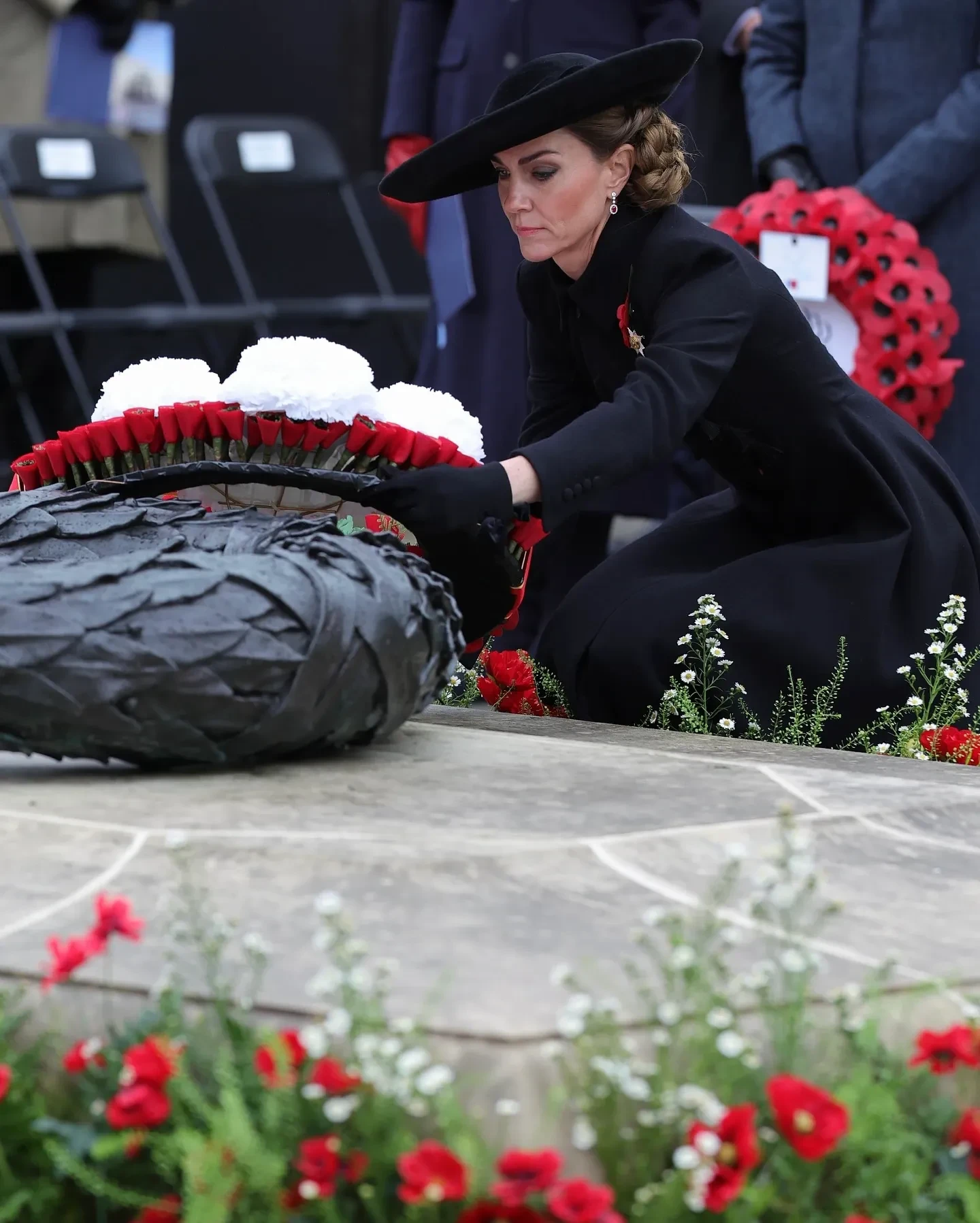 Во время церемонии Миддлтон почтила павших минутой молчания и возложила венок с написанной от руки запиской. После этого она встретилась и пообщалась с ветеранами, присутствовавшими на службе.