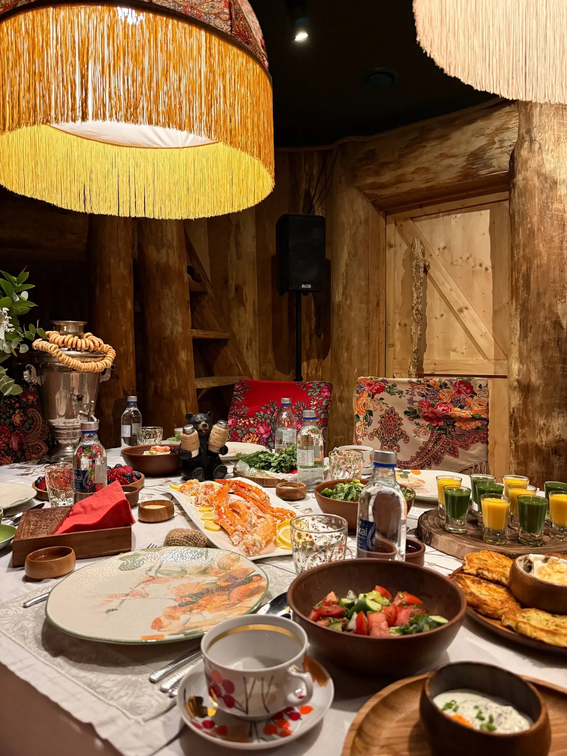 "Всё сходится", — подписала Вавилова фото, на котором обнимает козлёнка на фоне интерьера в русском стиле и под трек "Матушка-земля".
