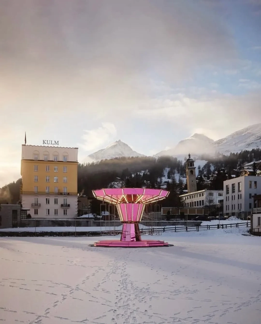 На одном из снимков Жукова позирует на фоне нарядной ёлки, а на другом запечатлён один из её сыновей с конфетами "Мишка на Севере". Вероятно, семья остановилась в местном отеле Kulm, который основательница музея "Гараж" отметила на публикации. Она также выложила фото зеркальной розовой карусели — новой работы художника Карстена Хеллера, установленной около отеля.