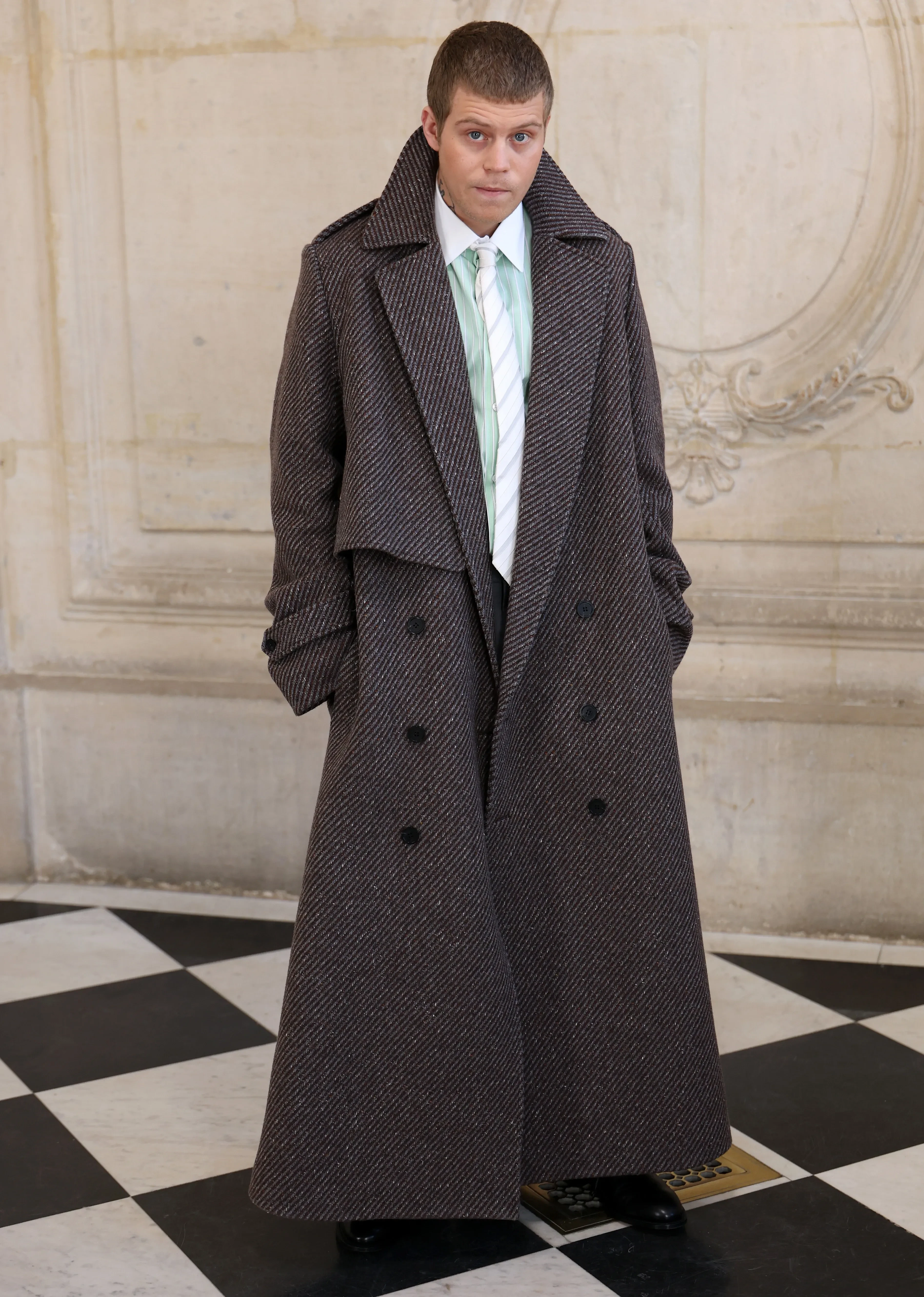 Показ Dior посетили: муж Натальи Водяновой Антуан Арно и его сестра, генеральный директор Dior Дельфина Арно, Роберт Паттинсон, Луи Гаррель, сын Гвинет Пэлтроу и Криса Мартина Мозес, актриса и жена Шайи Лабафа Миа Гот, Джейми Дорнан, певец Янг Лин и другие.