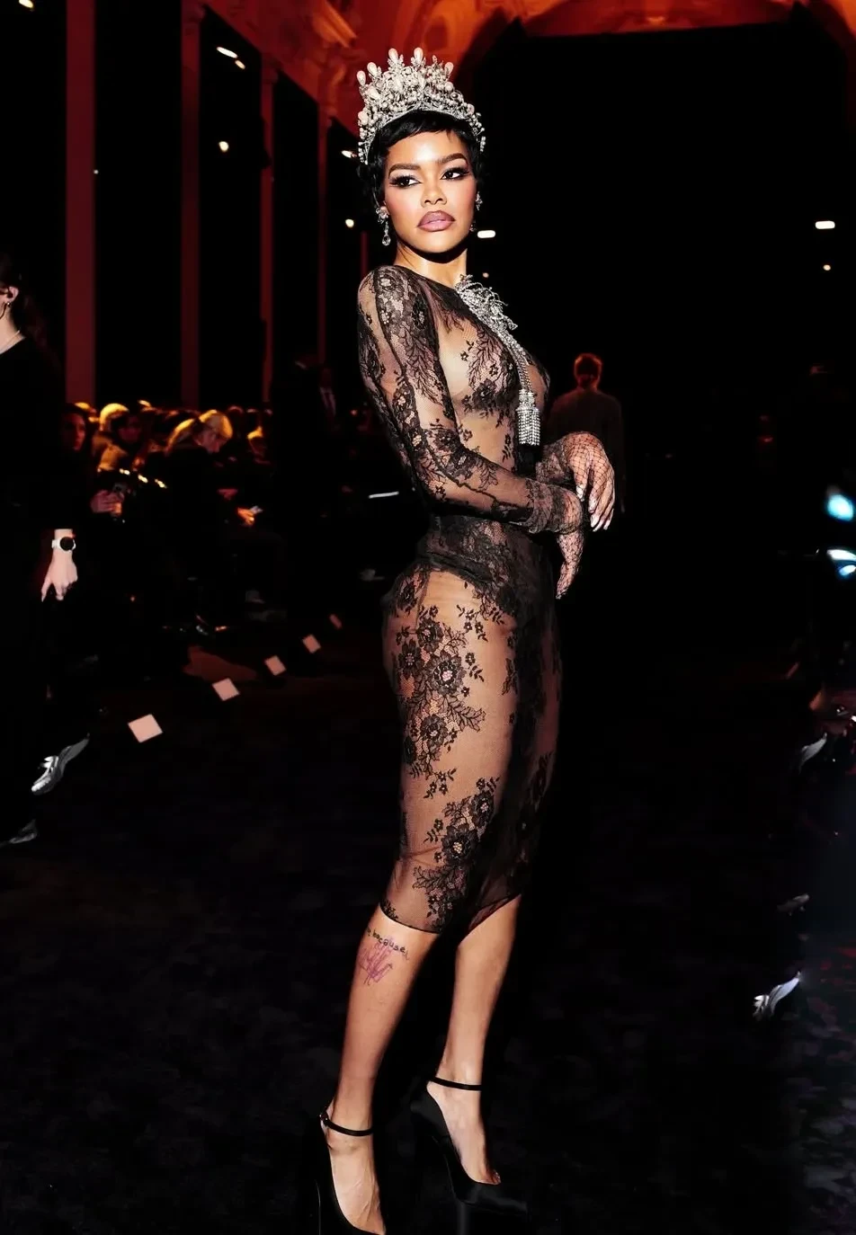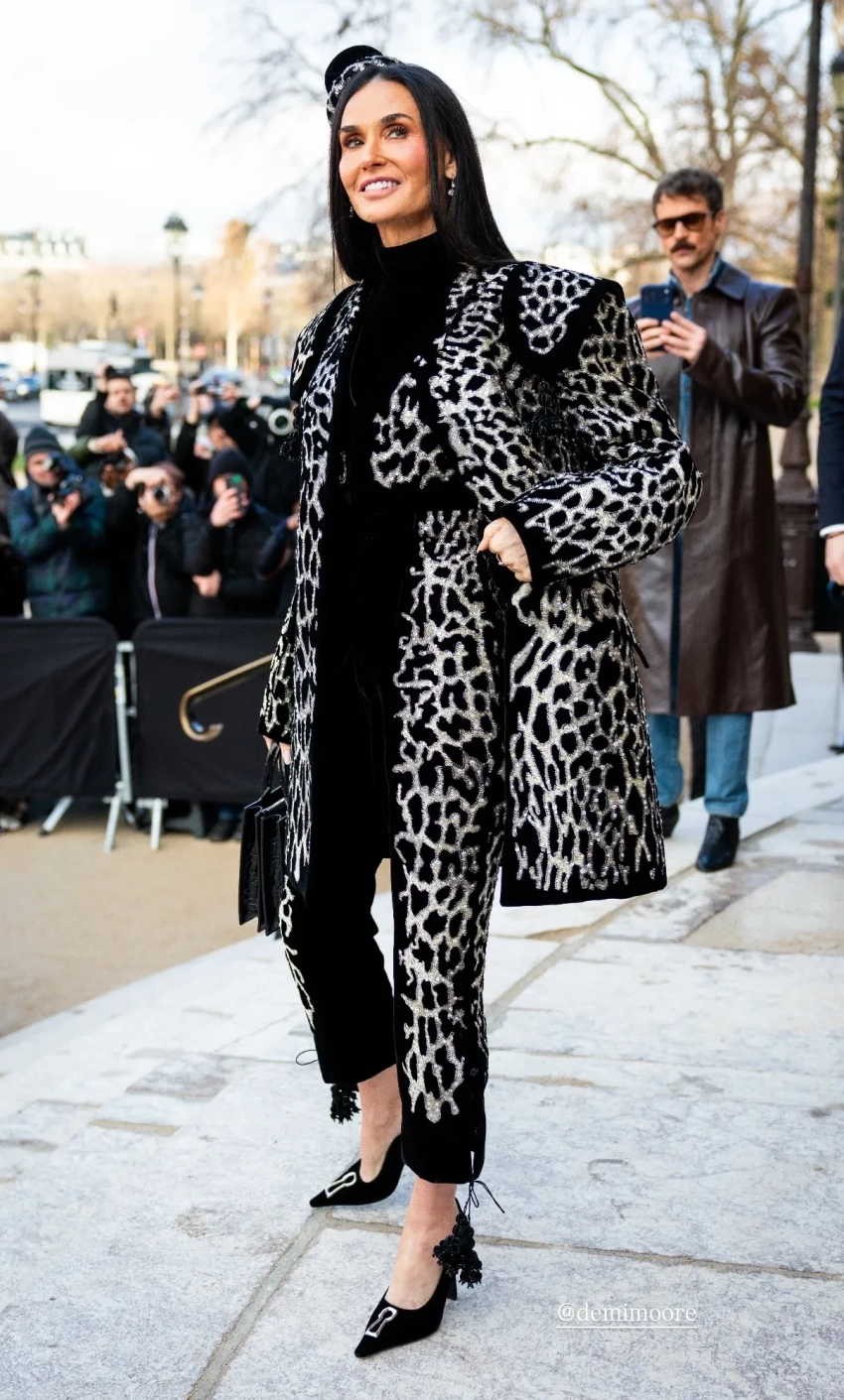 Рената Литвинова пришла в чёрном кейпе и солнцезащитных очках. 63-летняя Деми Мур блистала в брючном костюме с леопардовым принтом, а Карла Бруни надела чёрное платье с разрезом и кружевные колготки. 56-летняя Лорен Санчес в красном костюме появилась за руку с мужем-миллиардером, а номинантка на "Оскар" за роль в фильме "Битва за битвой", 35-летняя Тейяна Тейлор, позировала перед показом в прозрачном платье и с короной на голове.