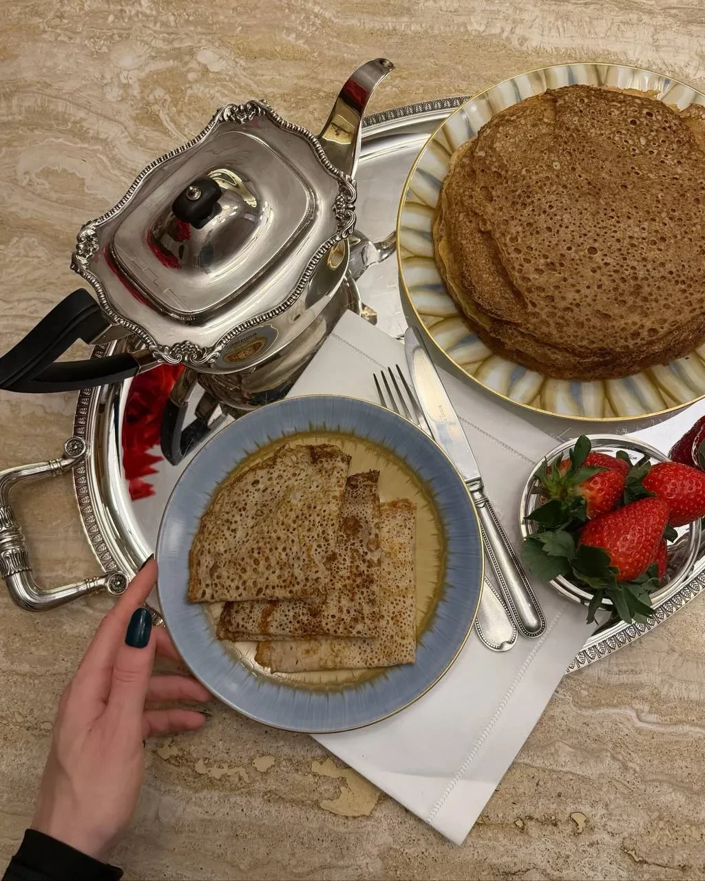 Виктория Шелягова накануне отгуляла Масленицу со звёздными друзьями в Москве. До этого светская львица показала, как встретила праздник в народном костюме, с блинами, чаем из сервиза и самовара. Тем временем Яна Рудковская свой праздничный стол блинами с творогом украсила золотыми приборами и игрушками с росписью.