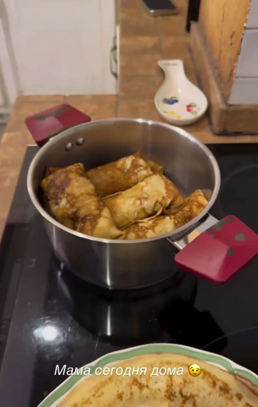 Виктория ШеляговаВиктория ШеляговаФото Виктории ШеляговойФото Яны РудковскойФото Яны РудковскойНаталья Давыдова поделилась своими "ажурными" блинами, которые она готовит на кефире и холодной воде, а подаёт с клубникой на серебряном подносе. Почти бывшая жена Джигана Оксана Самойлова решила не тратить время на готовку блинов дома и заказала доставку, а Виктория Боня еле угодила своей дочери Анджелине, которой предложила сырники, но она хотела драники. В итоге мать и дочь сошлись на блинах.