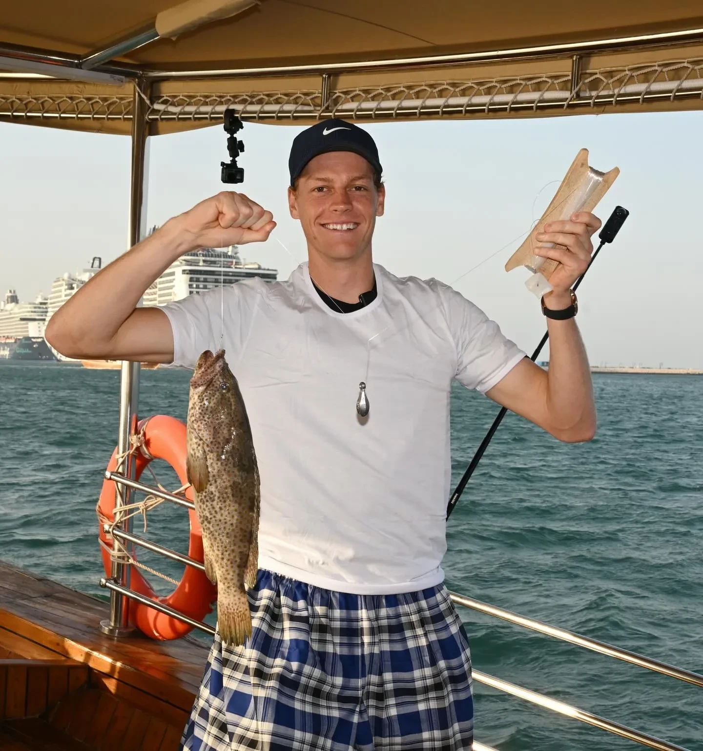 Перед тем как спортсменам провели инструктаж, они облачились в одинаковые наряды из белых футболок и клетчатых фут (мужская юбка, распространённая в арабских странах. — Прим. ред.). В противовес страстям на корте, улов удался у всех. "Это не ИИ, а просто парни, которые рыбачат в старом добром катарском стиле", — с юмором подписали организаторы пост.