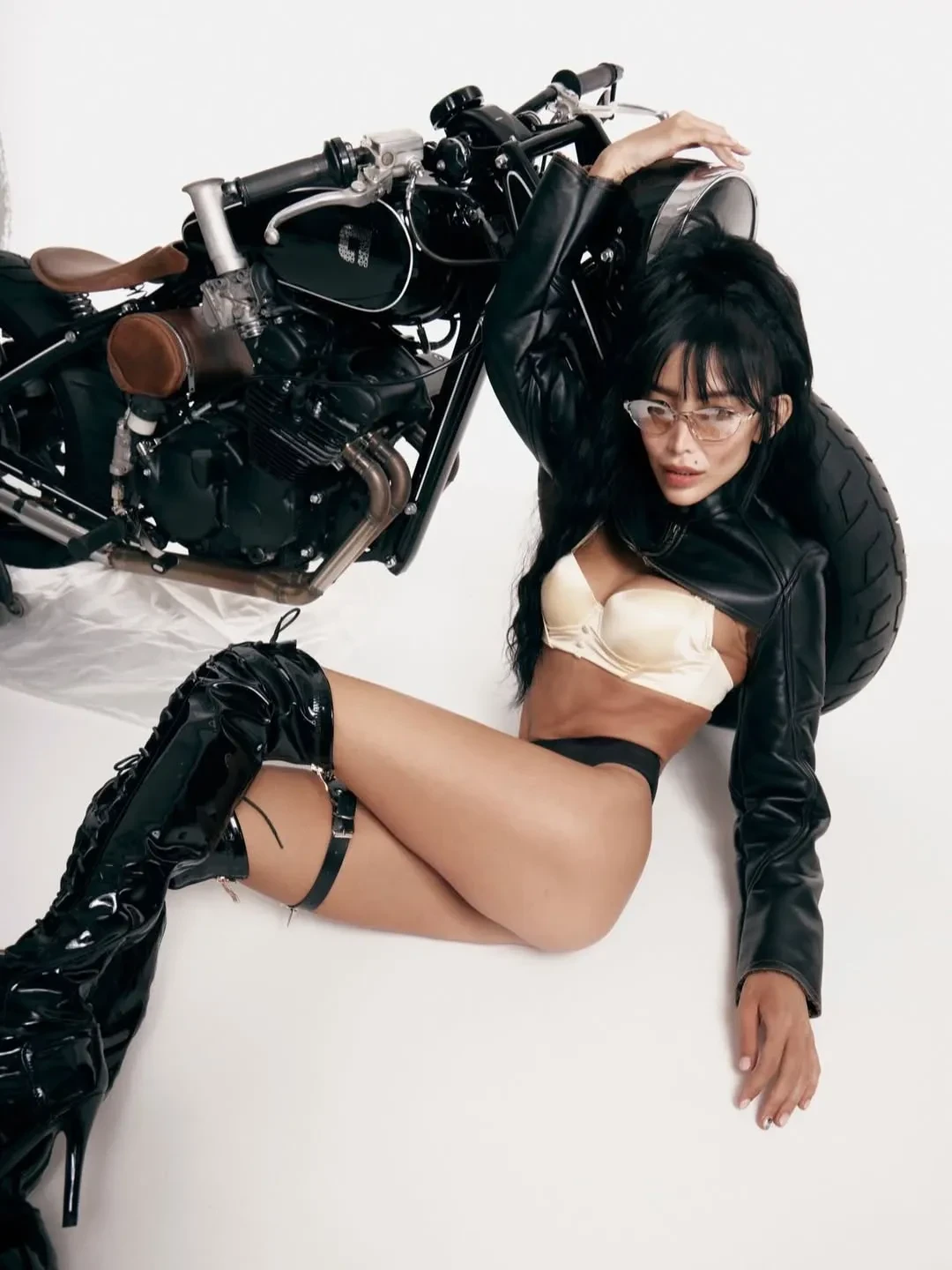 34-летняя супруга Александра Цекало Дарина Эрвин снялась в новой откровенной фотосессии. На снимках модель и художница позирует на мотоцикле в нижнем белье, кожаной куртке, топе и сапогах на каблуках.