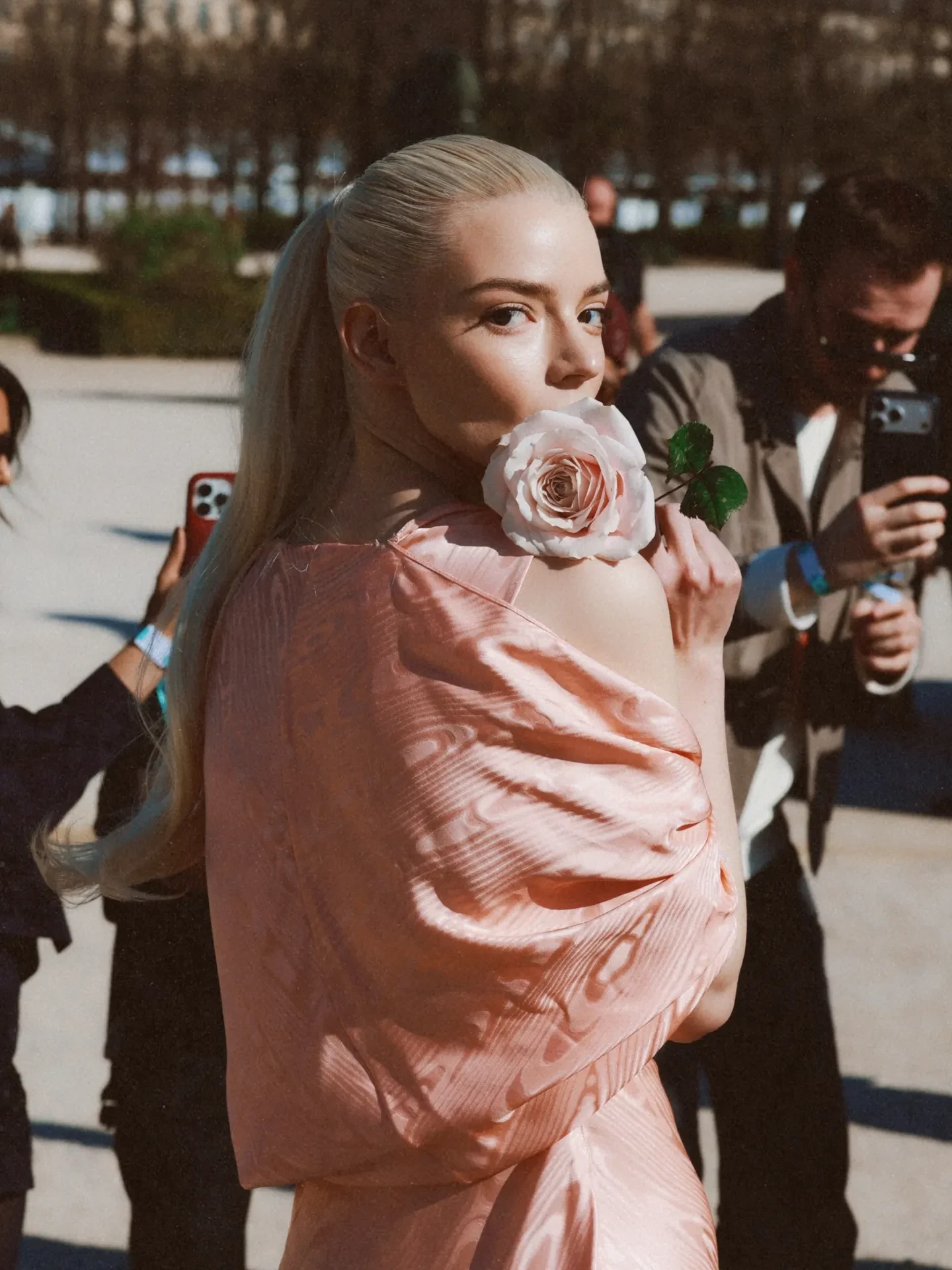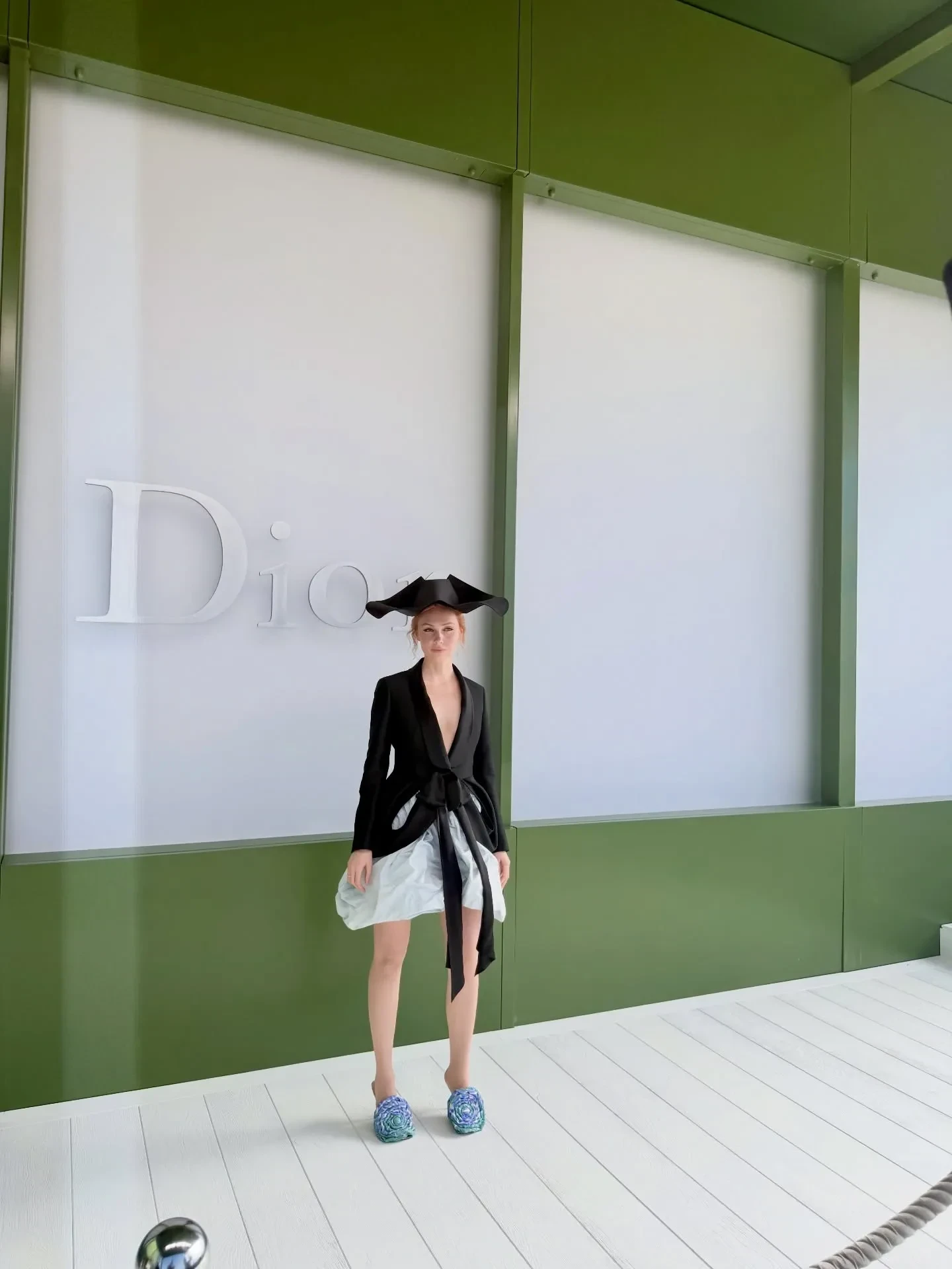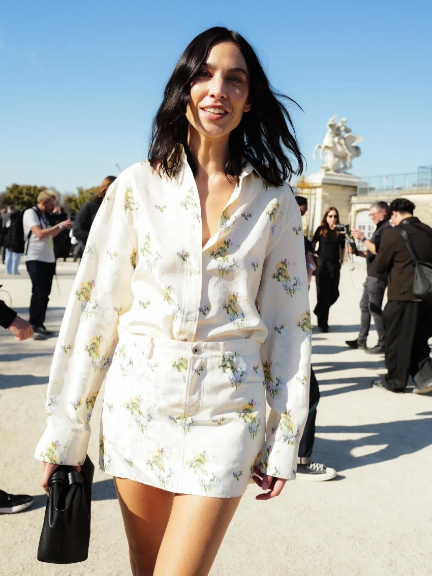 21-летняя Дева Кассель появилась в саду Тюильри, который выступил площадкой для показа, в синей рубашке в полоску и чёрной юбке-миди, дополнив наряд сумочкой и лодочками на невысокой шпильке. 50-летняя Шарлиз Терон выбрала total black образ: на ней была кожаная мини-юбка, топ и накидка с бантом на шее. 18-летняя Эвер Андерсон, ставшая недавно лицом Dior, блистала в приталенном платье-пальто в коричневую клетку.