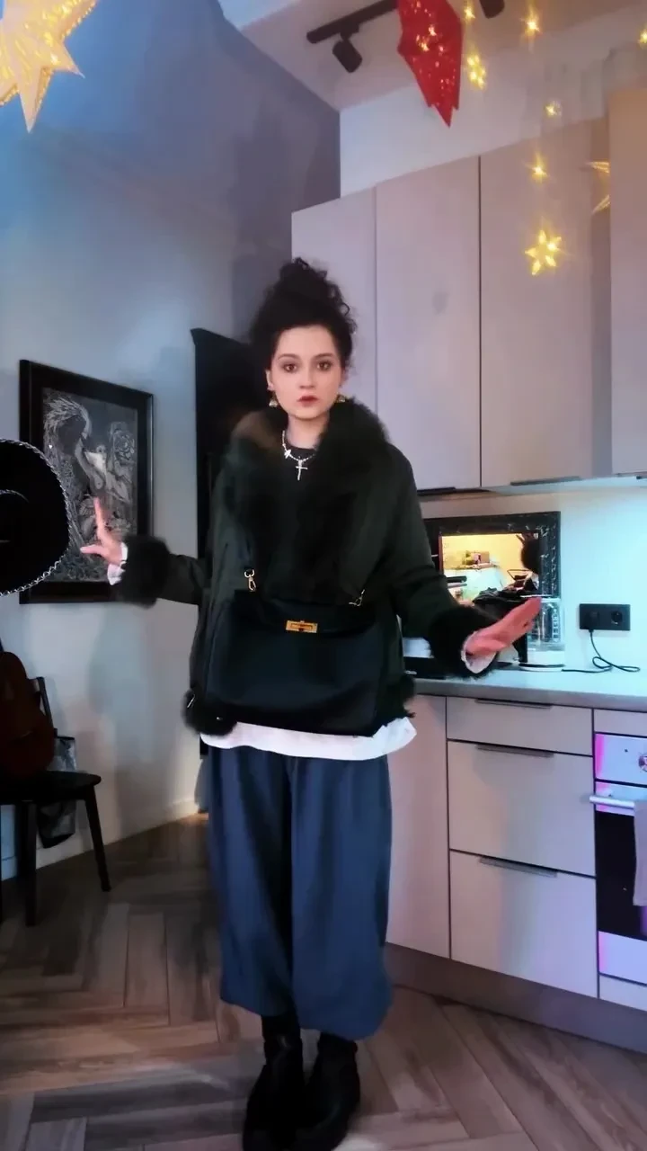 В соцсетях Мария опубликовала видео "сборов на развод". Для события она выбрала серые брюки-палаццо с подштанниками ("потому что не май месяц"), домашнюю футболку и "рваный" свитер. Брюки она заправила в носки с надписью "Гнев человеческий" и надела винтажные украшения, в том числе фамильное кольцо. "С буклей на голове. Стиль немножечко такой Хелена Бонем Картер", — прокомментировала она образ.