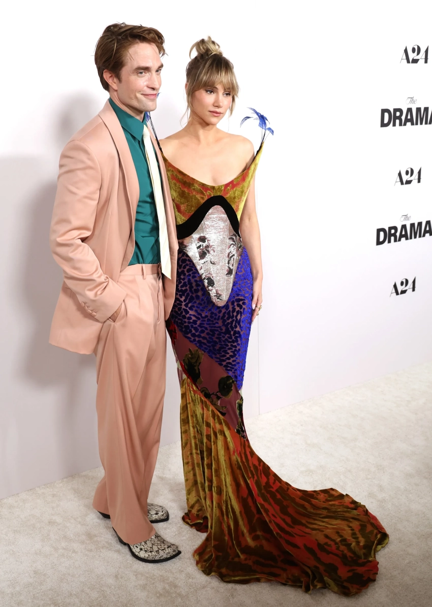 39-летний Роберт Паттинсон пришёл в розовом костюме Dior. На премьере его поддержала возлюбленная, певица и бывшая девушка Брэдли Купера Сьюки Уотерхаус. Она позировала рядом с актёром в платье из новой коллекции Harris Reed.