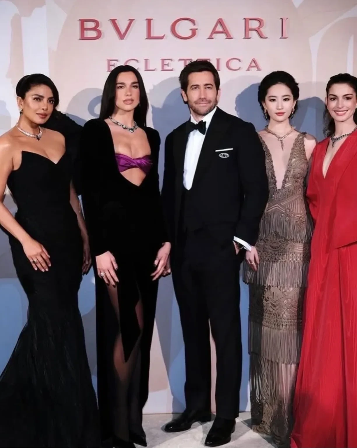 Энн Хэтэуэй, Дуа Липа, Приянка Чопра и Джейк Джилленхол на показе Bvlgari в Милане