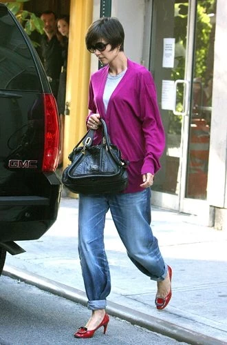 Мода на джинсы-бойфренды пришла к нам в конце нулевых. Ее родоначальницей считается Кэти Холмс. Именно она первой из знаменитостей попала в объектив папарацци в широких, подвернутых на голенях джинсах, которые одолжила у тогда еще мужа ─ Тома Круза.