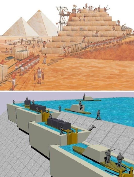 Примечательно: Каких только гипотез и версий не выдвигали ученые, строители и простые обыватели (не забыли и об участии инопланетян, конечно же), пытаясь объяснить тот или иной процесс. Хотя все понимают, что точных описаний технологий вряд ли когда-нибудь удастся отыскать (помимо описания Геродота во II книге «Истории», написанной через 2 тыс. лет после строительства и то, со слов жрецов). Единственно, что наряду с инновационными разработками, связанными с резкой камня и строительными работами, египтяне научились прокладывать каналы со сложной системой шлюзов, чтобы вода могла поднимать и опускать лодки/плоты, перевозящие каменные глыбы весом от 10 тонн и выше вне зависимости от рельефа и высоты местности. А также строить дороги, по которым можно было перемещать блоки уже от водных каналов или от близлежащих каменоломней.