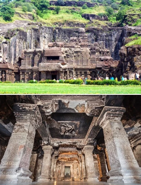 Скальный храм Кайлас – уникальный образец древней архитектуры, в котором переплелось множество стилей, секретных техник исполнения и скульптурных традиций (Пещеры Эллора, Индия). | Фото: vrajitoareledinromania.com.