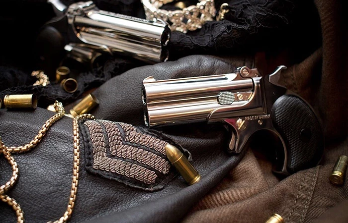 Изначально дерринджер не был двуствольным. Так называли небольшой карманный пистолет, предназначенный для самообороны. Весь смысл сводился к тому, чтобы быстро выхватить его из кармана и произвести выстрел. Он был создан исключительно для стрельбы на короткой дистанции: из-за недостаточно длинного ствола пуля быстро теряла скорость и кинетическую энергию, поэтому с увеличением расстояния убойная сила уменьшалась в геометрической прогрессии. Это был миниатюрный капсюльный пистолет калибра 10,4 миллиметра выпуска 1852 года. Он был довольно популярным, но особым спросом стал пользоваться после того, как из такого же застрелили Авраама Линкольна, президента США.