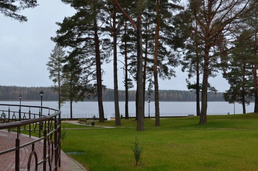 Исторический экскурс на сайте санатория говорит о том, что берега озера Плисса люди облюбовали еще 3 тысячи лет назад, так что я не была первопроходцем. Из Минска я ехала по навигатору в телефоне и даже не заблудилась (почти, крюк через Глубокое – не в счет. Как можно не свернуть туда, куда приглашает огромная банка сгущенки?). Указатель в самой деревне Плисса тоже не подвел – пару минут и передо мной внушительный забор и пост охраны. Охранник советует подъехать ко входу в главный корпус на машине, а после вернуться и оставить авто на стоянке под его и видеоконтролем.