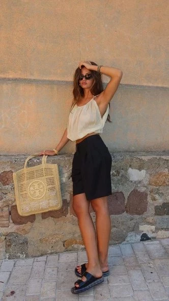 Футболка — базовый элемент в женском гардеробе, который можно носить и с брюками, и шортами, и юбками, и джинсами, и даже платьями. Девушки стилизуют его исходя из своих предпочтений и актуальных тенденций, поэтому, например, в этом сезоне модницы отдают предпочтение оверсайзу и носят футболку навыпуск. Однако те, кто стремится создавать более элегантные и романтичные образы, выбирают для себя подходящие стайлинг-трюки и заправляют вещь самыми разными способами.
