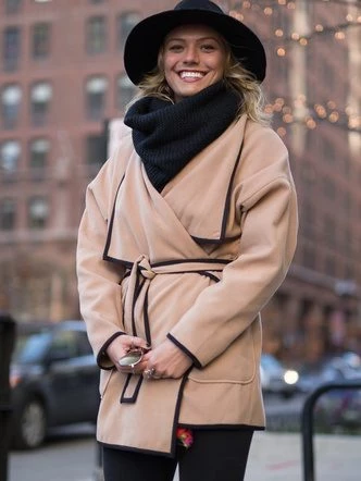 Пальто-халат черного или серого цвета, а также в оттенке кэмел — классика вне времени. Но такая модель должна соответствовать нескольким характеристикам, чтобы быть способной противостоять моде. Во-первых, это качественный материал, который действительно не потеряет своего вида через несколько лет. Во-вторых, длина. Стильное пальто на запах обязательно должно быть ниже колена, а лучше доходить до щиколотки.