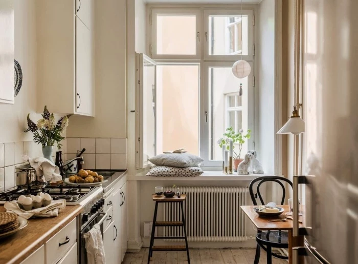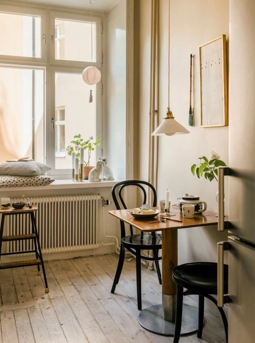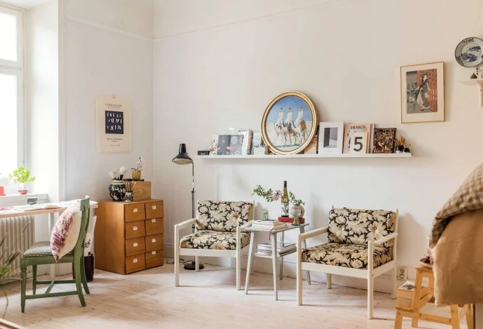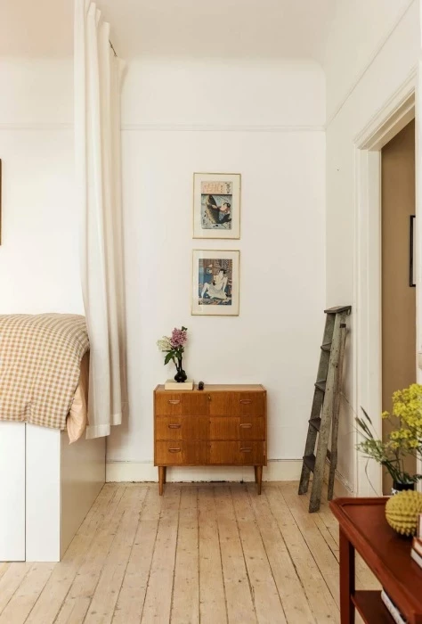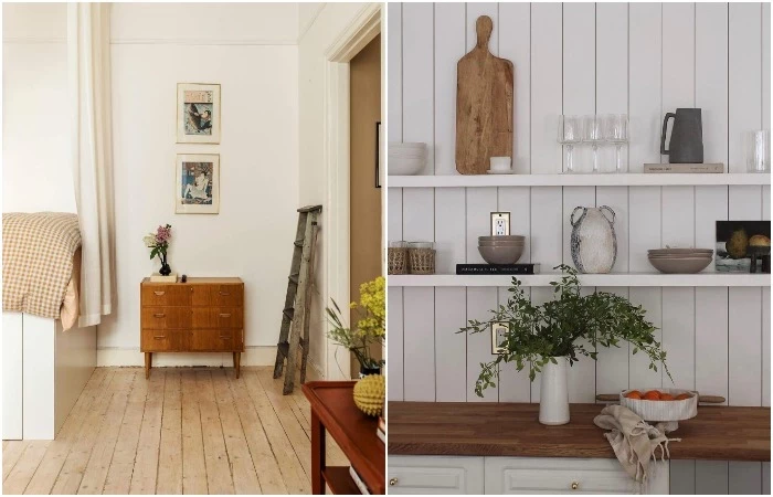 В случае же с владелицей небольшой квартиры, общая площадь которой едва дотягивает до 34 кв. метров, то ей в этом плане повезло, поскольку для сбора и приобретения ретро-мебели и других старинных вещей не нужно было тратить ни время, ни деньги. Да и обновление интерьера сильно дорого не обошлось поскольку, как и сотню лет назад стены просто побелили известью (если бы в старом оформлении присутствовали оранжевые тона, то их бы непременно обновили только суриком, но никак не современной краской). А полы очистили от старого налета, так и оставив неокрашенными. При этом их никто даже не помышлял менять, поскольку древесина, как и известь являются природными, экологически чистыми материалами, что играет важную роль в оформлении жилых и даже общественных пространств Швеции.