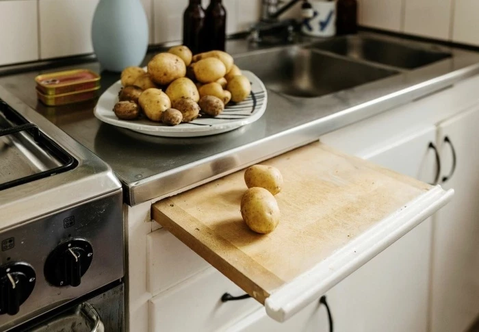 Та самая выдвижная доска и добротная нержавеющая поверхность с мойкой, которые хоть и не первой свежести, зато свои функции выполнять будут как минимум еще пару десятков лет. | Фото: leplusinteressant.com.