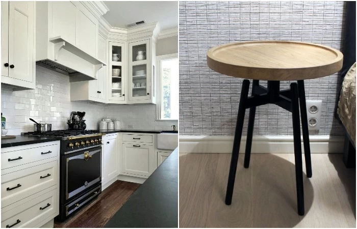 Черными могут быть ручки на фасадах или ножки на столике