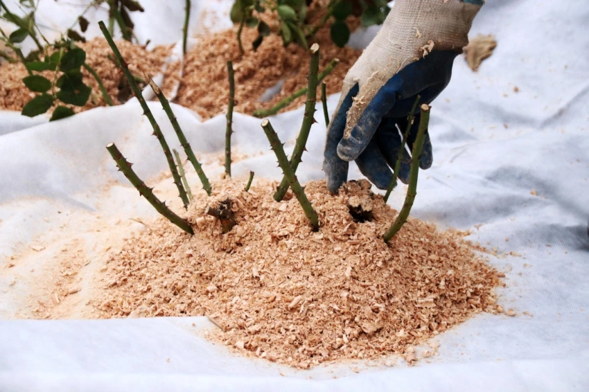 - Уложите ветки в качестве мульчи для роз, винограда, клубники и других многолетников — они защитят корни от морозов и перепадов температур.