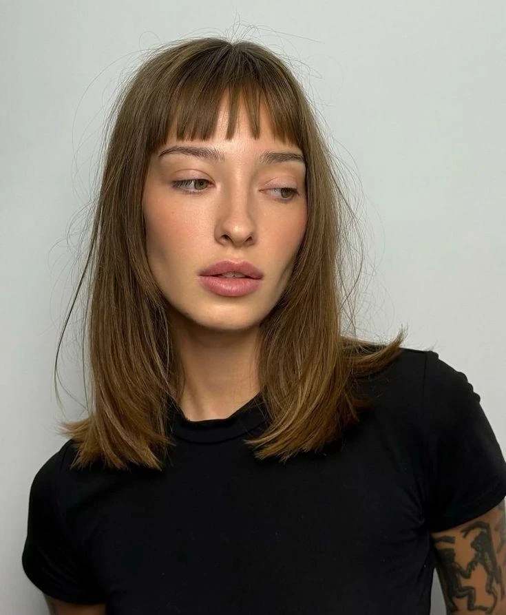 Такая челка требует точной работы мастера и регулярного обновления, но результат стоит усилий — образ получается аккуратным, выразительным и очень стильным.
