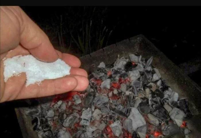 При этом стоит отметить один важный момент: соль – опасна. Дело в том, что, попадая на горячие угли она начнет «взрываться» . Это абсолютно нормально, но может быть не слишком приятно и даже болезненно для рук. Поэтому берегите конечности! А еще лучше – используйте перчатки или варежку.