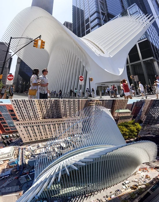 7. Транспортный узел Oculus на площади перед Всемирным торговым центром от Сантьяго Калатравы (Нью-Йорк, США)