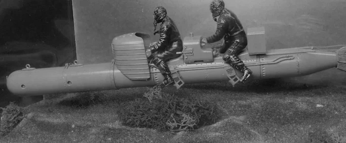 Была пилотируемая торпеда и у британского флота: первый концепт получил название «Колесница», под которым произвели две модели: Mk 1, имевшая длину в 6,1 метра, и Mk 2 длиной уже в 9,1 метров. Обе модели «Колесницы» перевозили двух человек. Были и более поздние версии, покрупнее. Само собой, не отставали в этих разработках и немцы: так, в 1943 году флот обзавёлся пилотируемой торпеду Neger, предназначенной для перемещения одного бойцы с максимальной скоростью в 4 узла. И хотя технически совершенной их назвать было нельзя — некоторые операторы погибали из-за неисправностей — около 40 копий всё-таки построили, и они смогли потопить несколько кораблей.