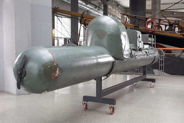 На смом деле первоначально словом «торпеда» обозначались итальянские морские боевые снаряды, и только потом это название закрепилось за более крупными британскими торпедам. В те времена подобный тип оружия использовался для поражения вражеских кораблей в гаванях Средиземного моря. Однако в современном понимании пилотируемая торпеда представляет собой концепцию миниатюрной пилотируемой подводной лодки, которая несёт бомбу. А разработали и запатентовали её ещё в 1909 году по проекту одного британского морского офицера. Впрочем, она ни разу не была применена во время Первой мировой войны.
