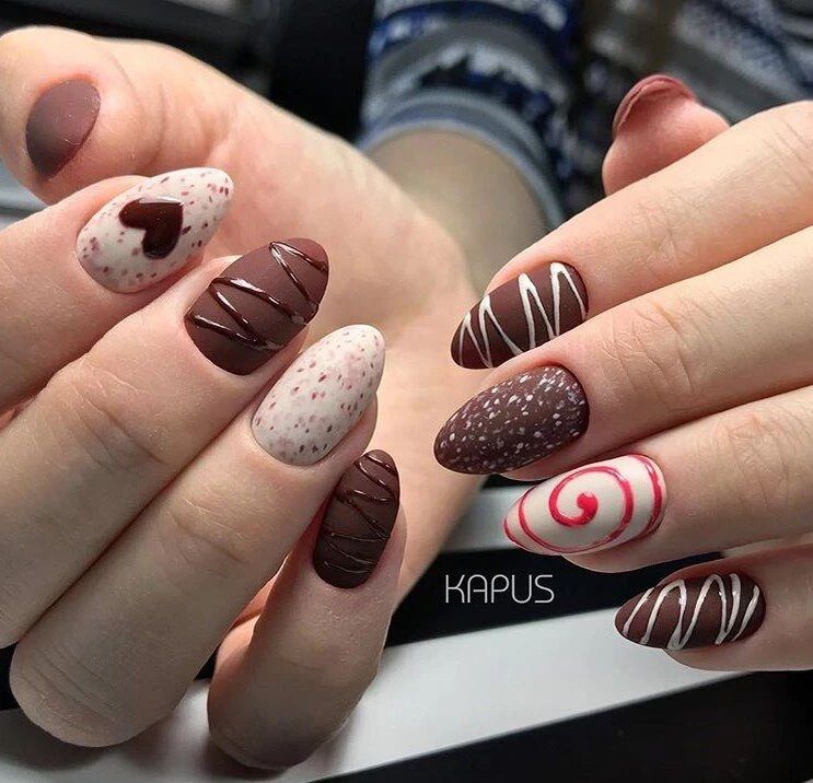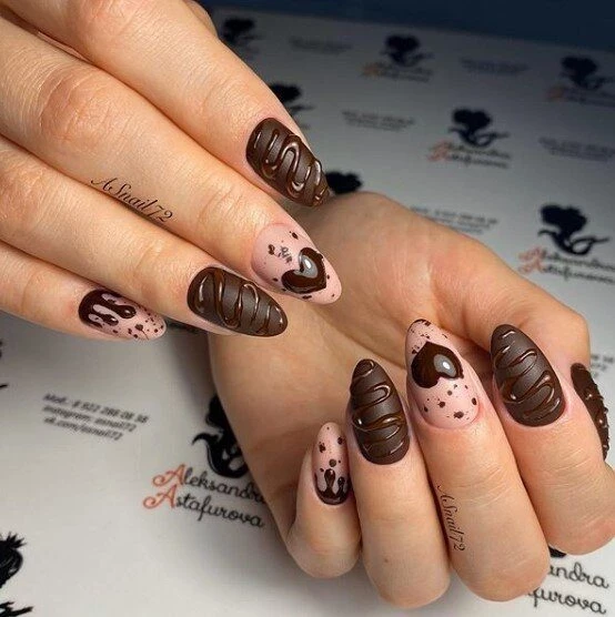 Маникюр в стиле шоколадного пирожного