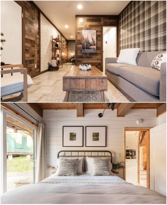 Оригинальная комбинация отделочных материалов (Acorn Falls, США). | Фото: moderntinycabin.com.