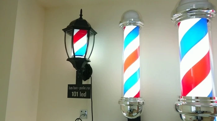 В современном дизайне барберполов до сих пор используются традиционные цвета. Ведь, помимо стандартных стрижек, нынешние салоны предлагают классические услуги, такие как опасное бритье, предварительно распаривая кожу клиента.