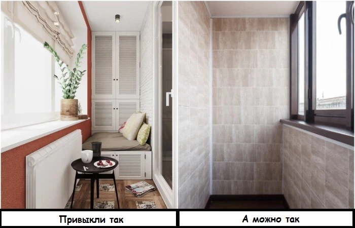 Вместо обоев на балконе можно использовать плитку. / Фото: flinstone.ru