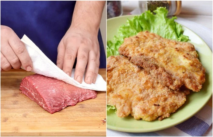 Просушите мясо перед готовкой бумажным полотенцем
