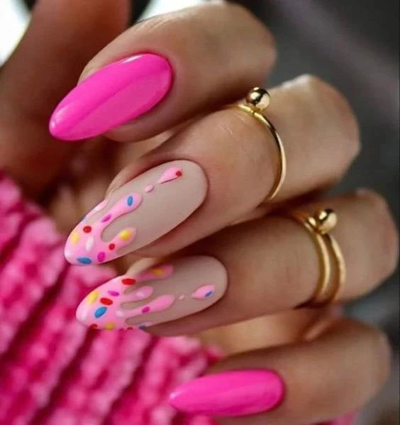 Лёгкий, игривый, почти съедобный — дизайн с эффектом тающего мороженого вызывает ностальгию по детству. Основа — пастель, верх — белые или цветные «подтеки».