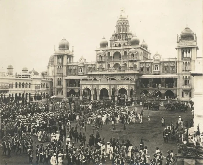 Единственная фотография более ранней версии Майсурского дворца, сделанная в 1850 году за 47 лет до пожара, его уничтожившего. | Фото: mysore.ind.in.