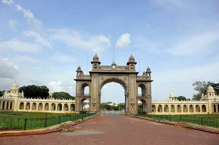 На входе посетителей встречают арочные ворота. Они украшены эмблемой и гербом Майсурского королевства и санскритским стихом (नबिभॆतिकदाचन — девиз королевства, что означает «Никогда не страшно»). Двигаясь дальше, можно увидеть три других входа: Западный вход (обычно открывается на фестивале Дуссехра), Восточный вход (это парадные ворота, которые открыты только для VIP-персон, официальных делегаций и во время проведения фестиваля Дуссехра), а также Южный вход (который является главным общественным входом).