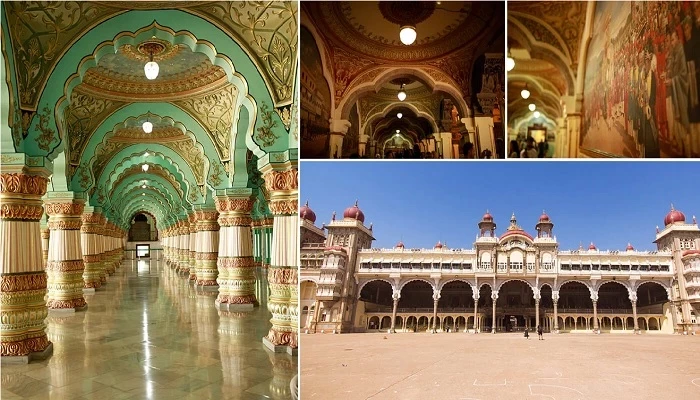 С каких ворот не попадут посетители на территорию бывшего королевского дворца, главное, что привлечет их внимание – это, конечно же, дворец. Основное здание имеет три этажа, облицовано оно тонкими плитами серого гранита, а его купол сделан из темно-розового мрамора. Поскольку представители династии Водеяр, были великими покровителями изящных искусств не стали экономить ни на строительстве, ни на оформлении главной королевской резиденции, все работы выполняли лучшие мастера княжества и других государств. Замысловатые квадратные башни, ориентированные на стороны света и покрытые розовыми куполами; впечатляющие арки, поддерживаемые витиеватыми колоннами; скульптура индуистской богини богатства, удачи и процветания Гаджалакшми со своим слоном; открытый балкон с огромными колоннами, щедро покрытые резьбой; окружающий красивейший архитектурный комплекс благоухающий сад – все это лишь малая часть, того чем можно восхищаться и говорить бесконечно. Как и о фантастических интерьерах, равных которым точно не сыскать, ведь даже в самых смелых мечтах не привидится такая красота.