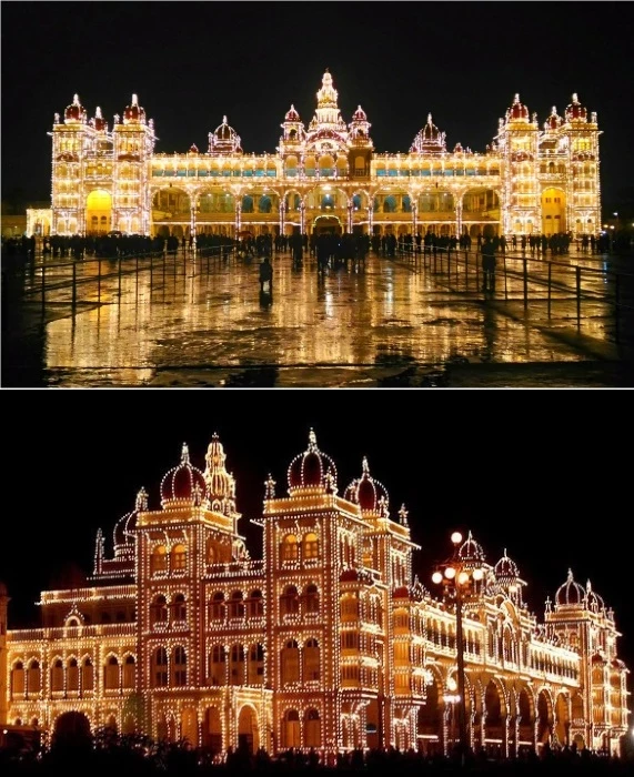 Два месяца в году королевский дворец Майсура каждую ночь сверкает тысячами огней (Mysore Palace, Индия).